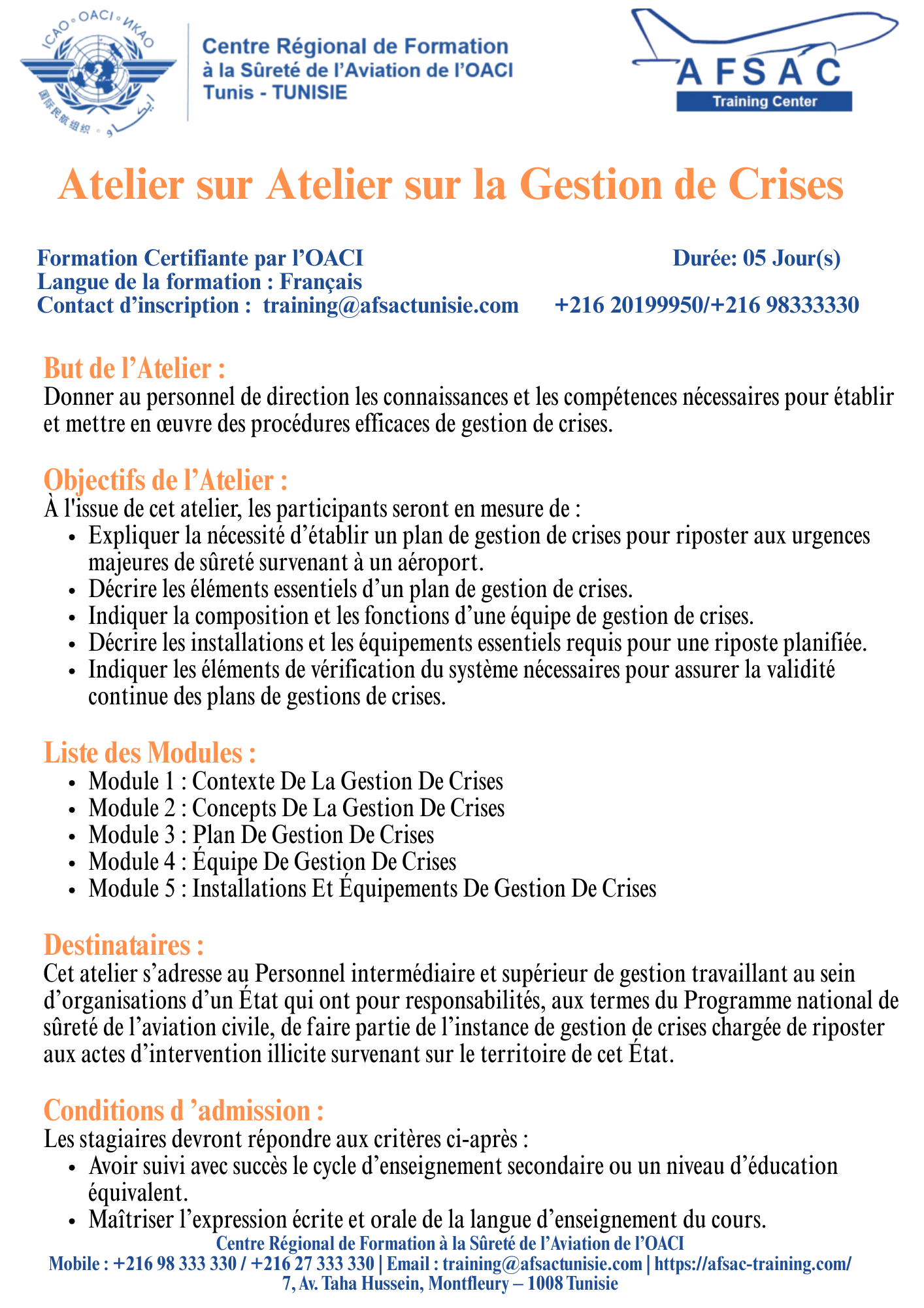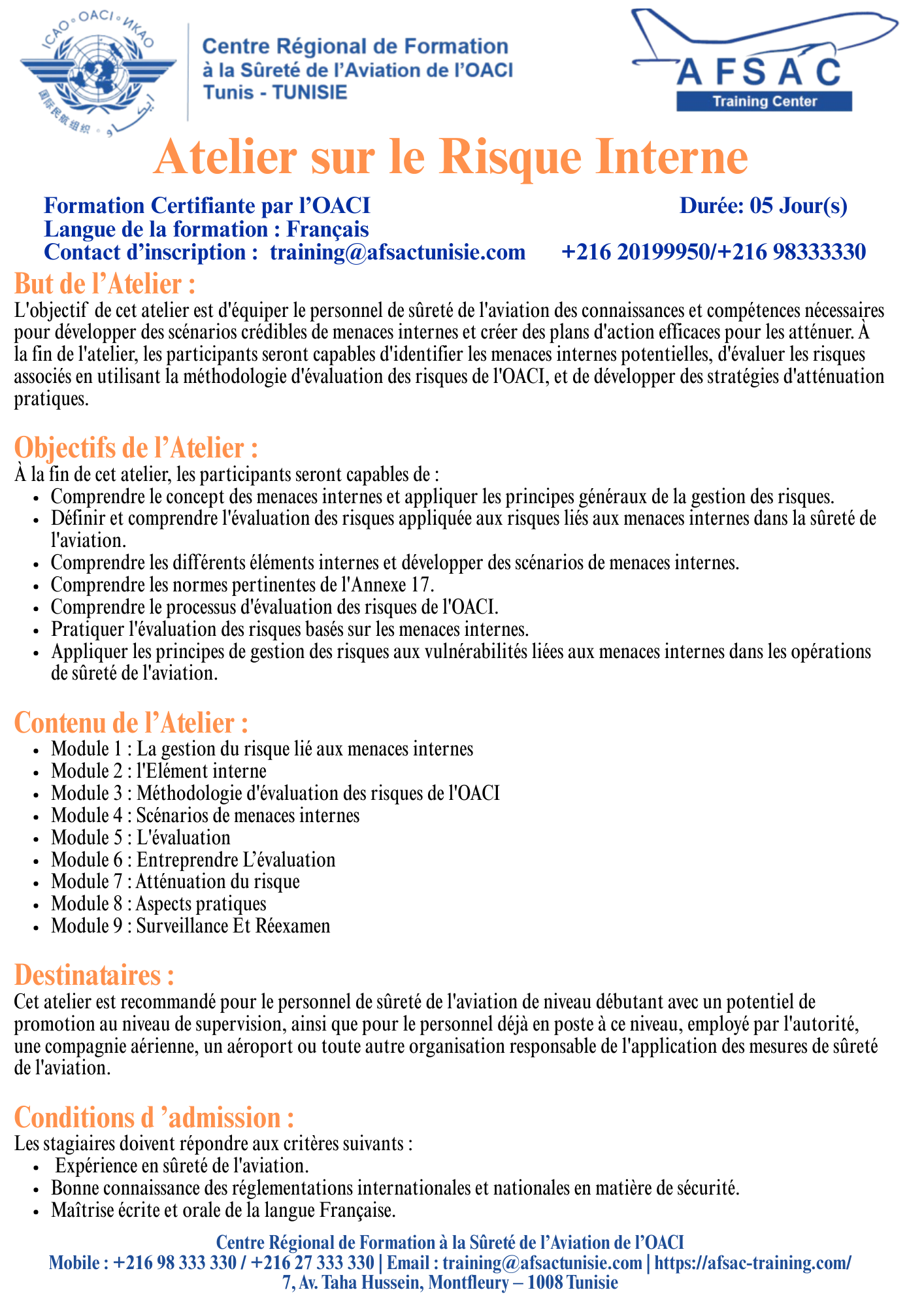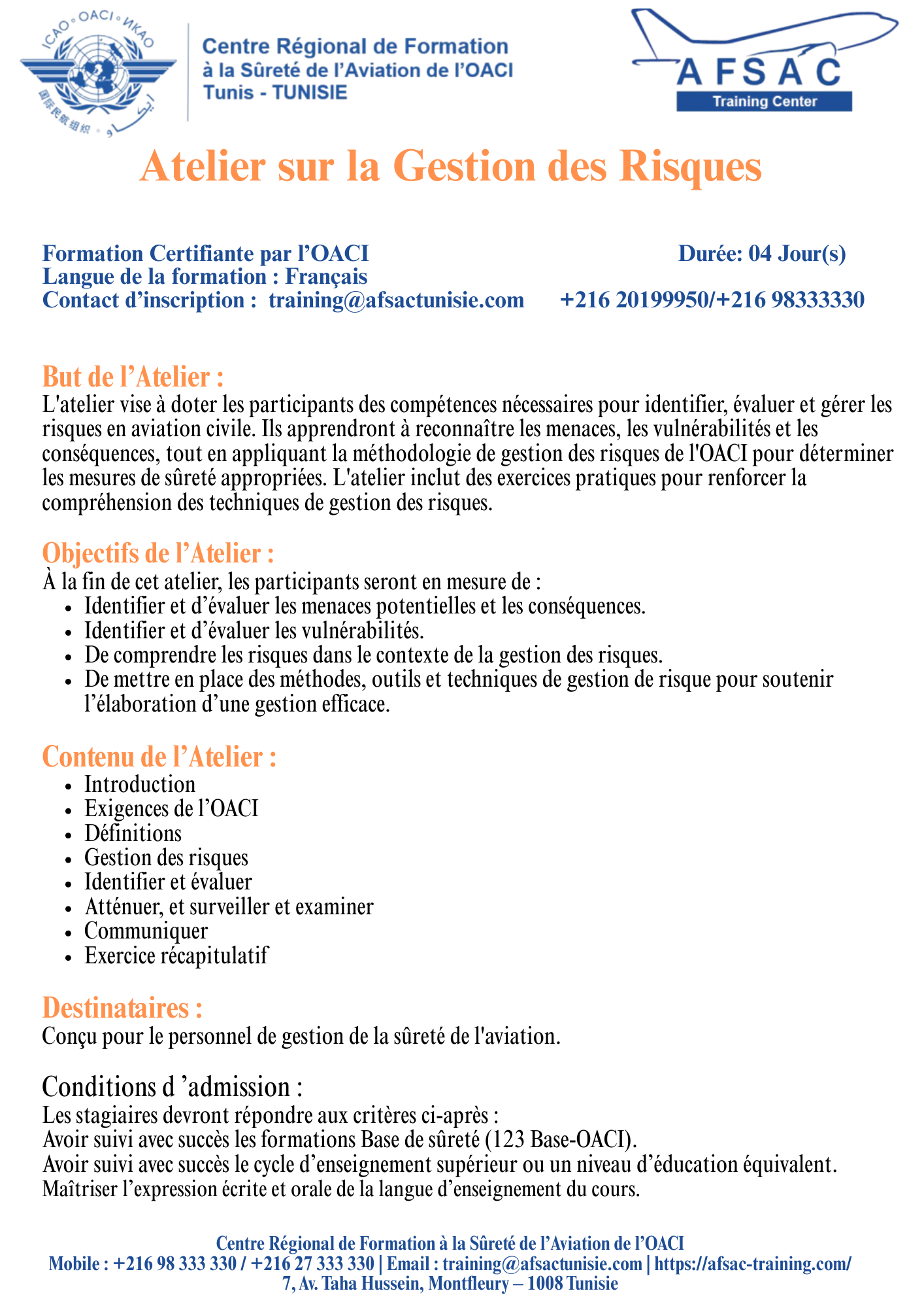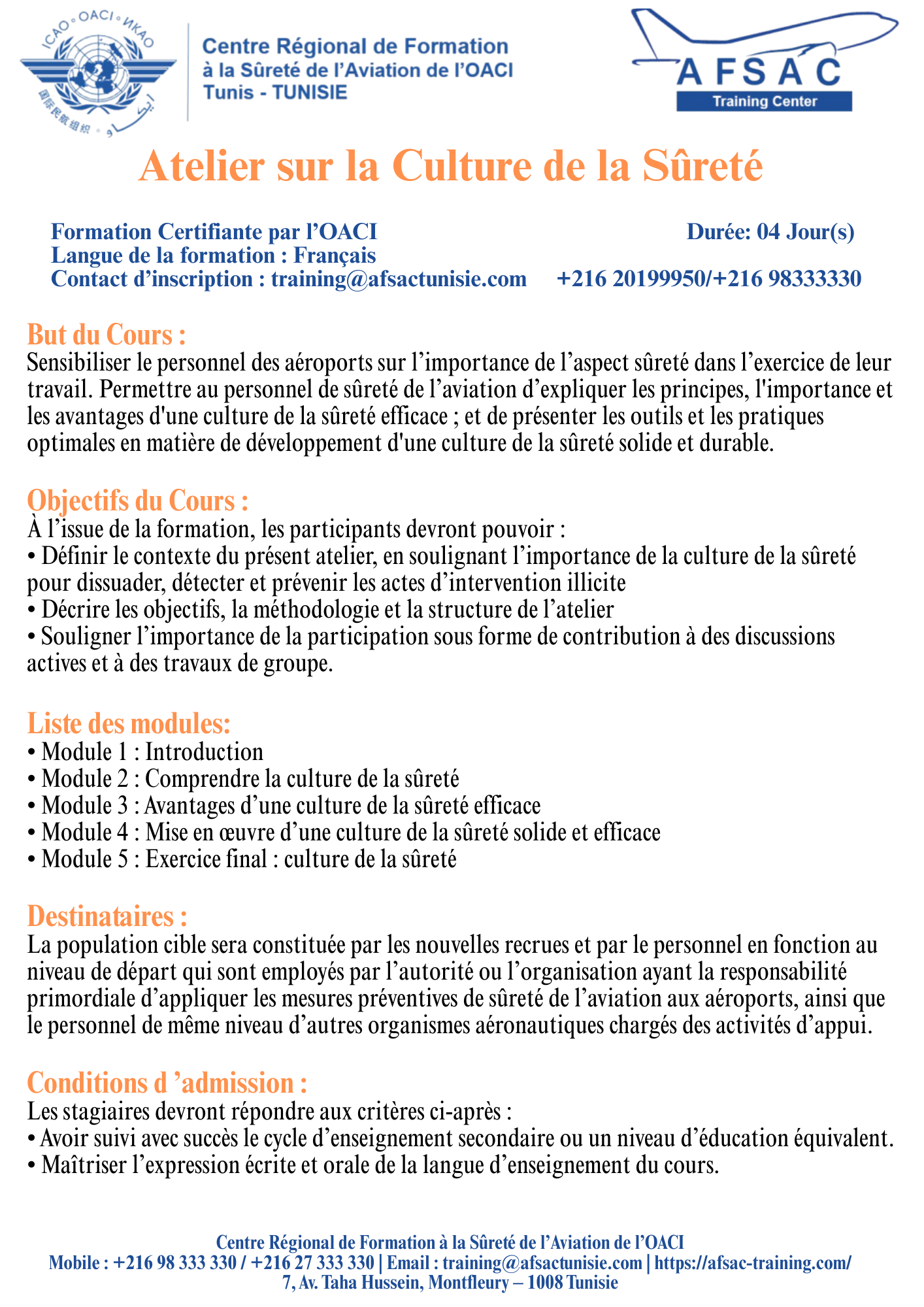 Les fiches descriptives des cours selon les mallettes pédagogique de l'OACI
