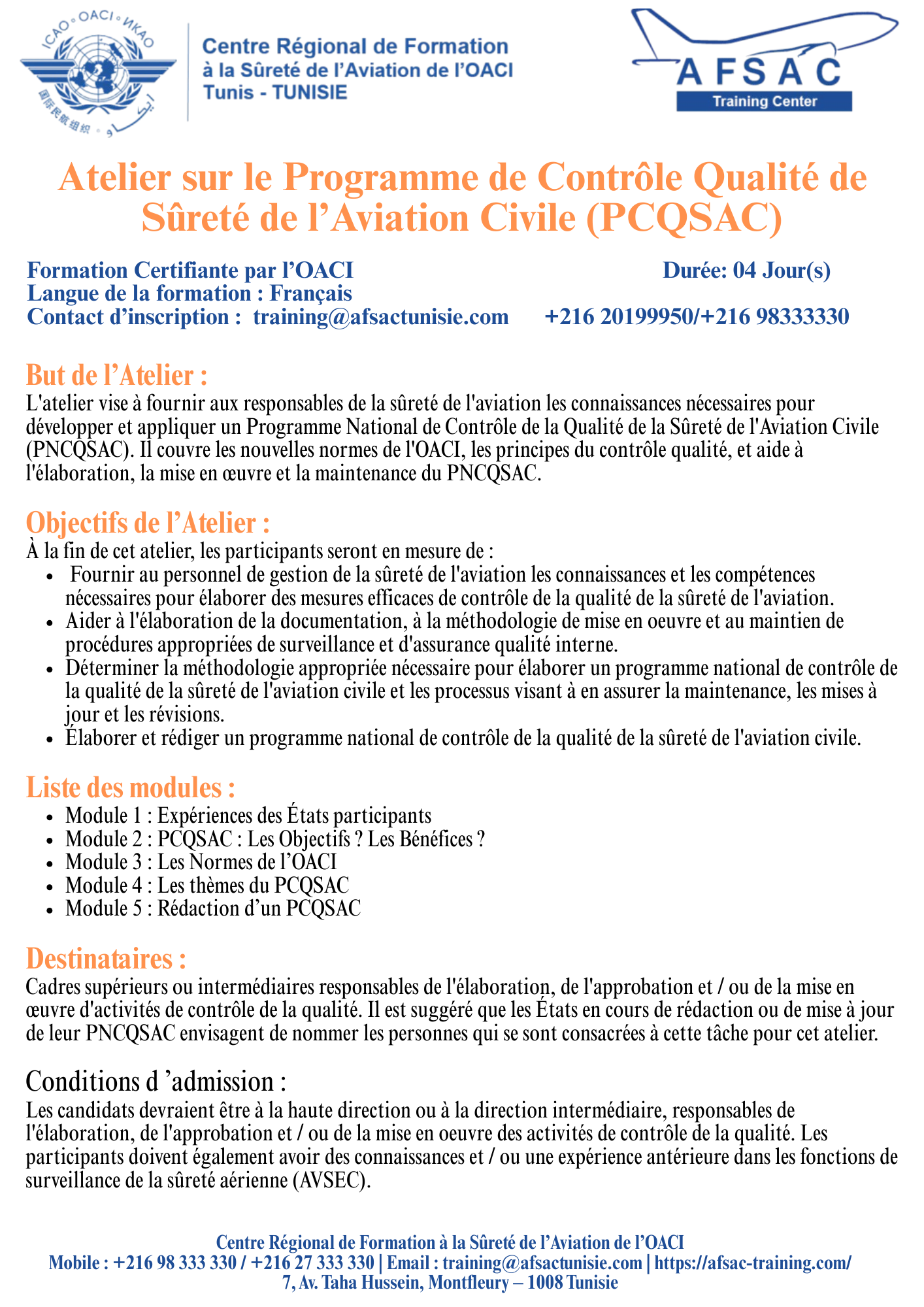 Atelier sur le Programme de Contrôle Qualité de Sûreté de l’Aviation Civile (PCQSAC)