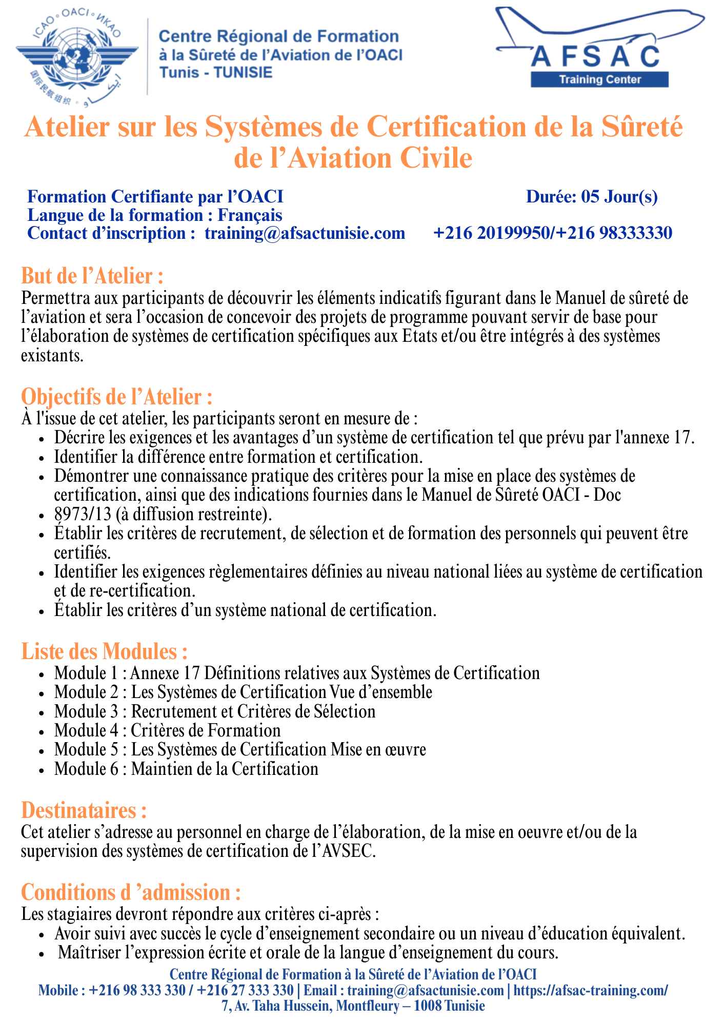 Atelier sur les Systèmes de Certification de la Sûreté de l’Aviation Civile