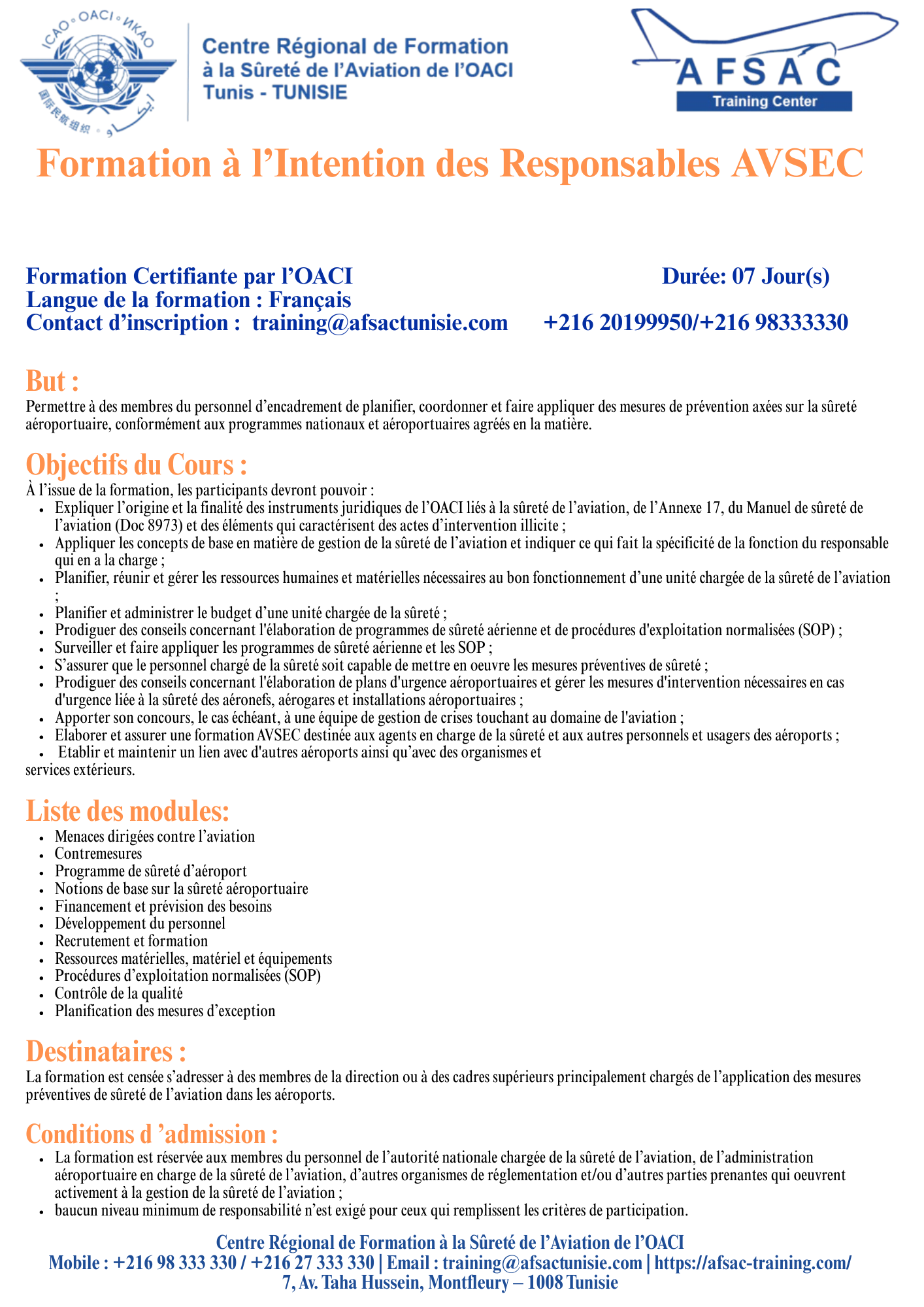 Cours AVSEC OACI à l’intention des responsables AVSEC